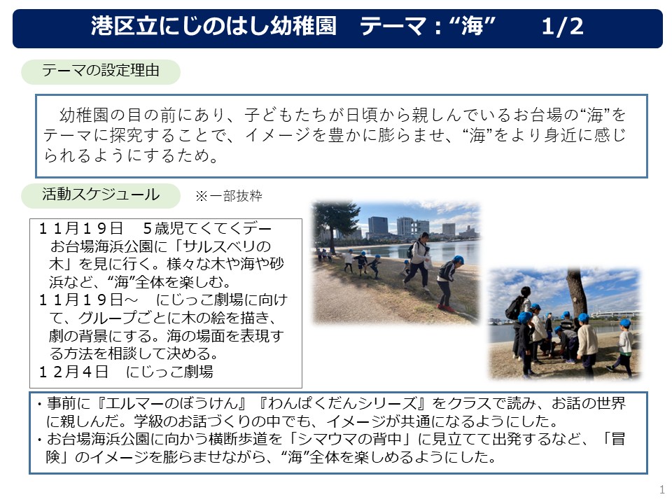 「とうきょうすくわくプログラム」とは、全ての乳幼児の「伸びる・育つ(すくすく)」と「好奇心・探究心(わくわく)」を応援する幼保共通のプログラムで、乳幼児の豊かな心の育ちをサポートするため、主体的・協働的な探究活動の実践を促進するものです。